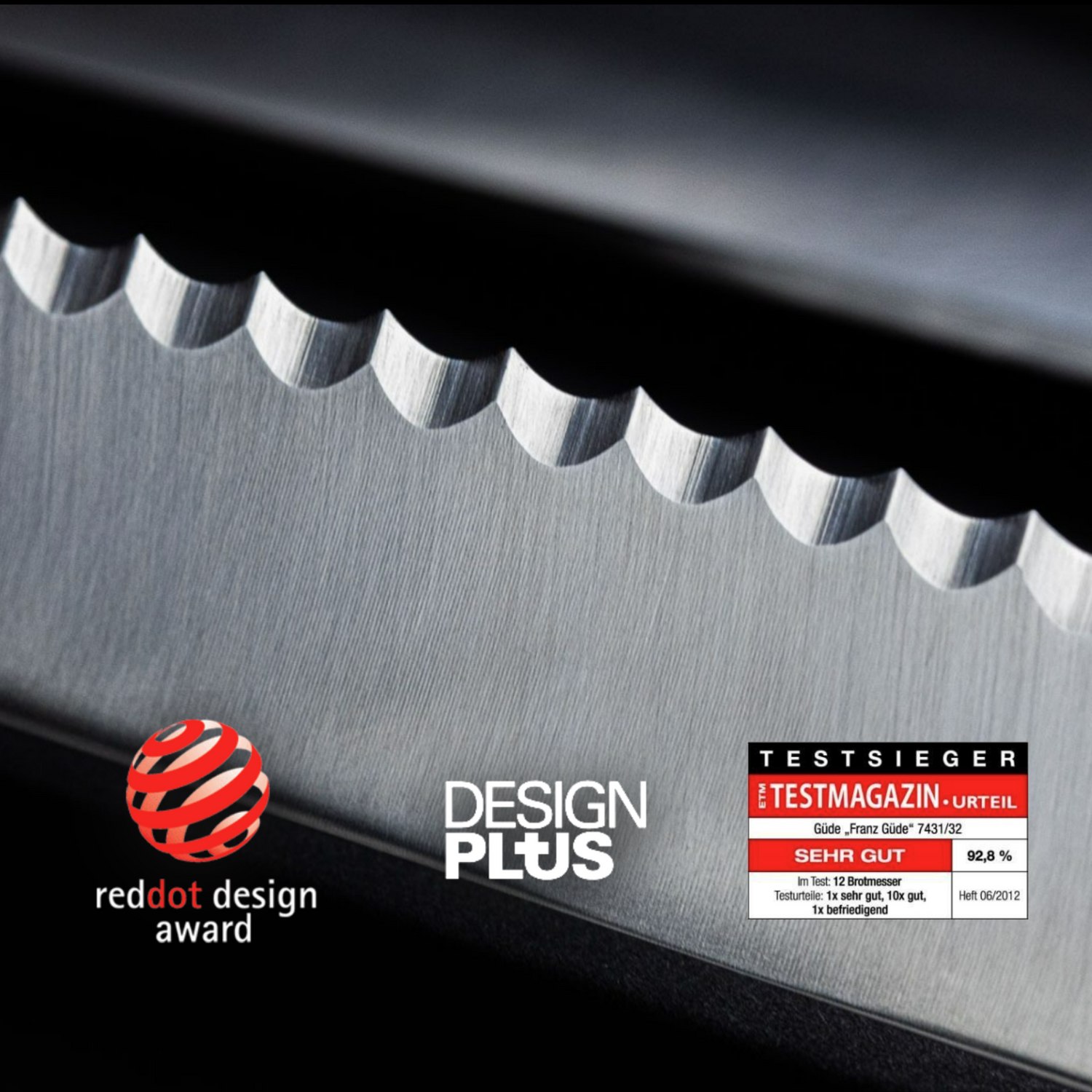 THE BREAD SAW -The bread knife "Franz Güde" is THE BREAD KNIFE. Franz Güde is the inventor of the "Güde- serrated edge". This significantly increases the cutting ability and edge retention. The bread knife "Franz Güde" is available in several versions and in special designs