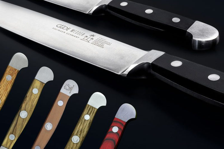 Gude Alpha Series Forged Double Bolster Chef's Knife 8-in, Black Hostaform Handle