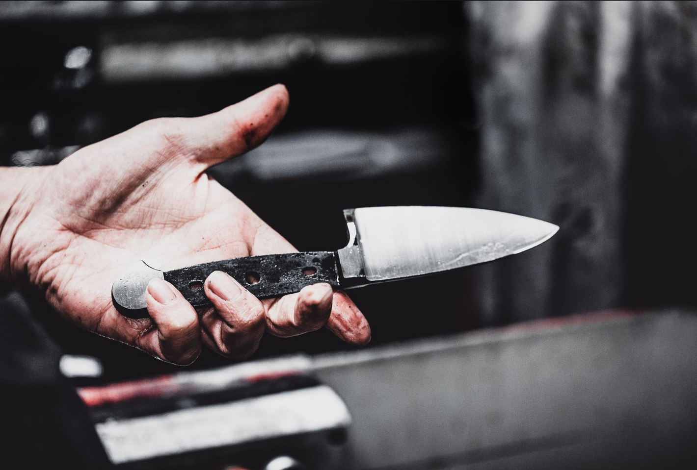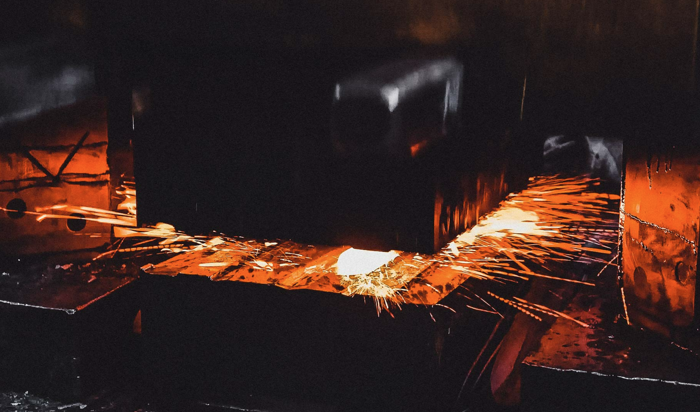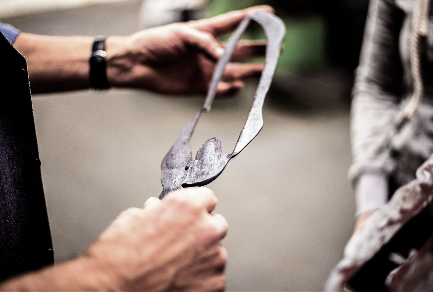 Finally, the knife blank is stamped out of the forging.