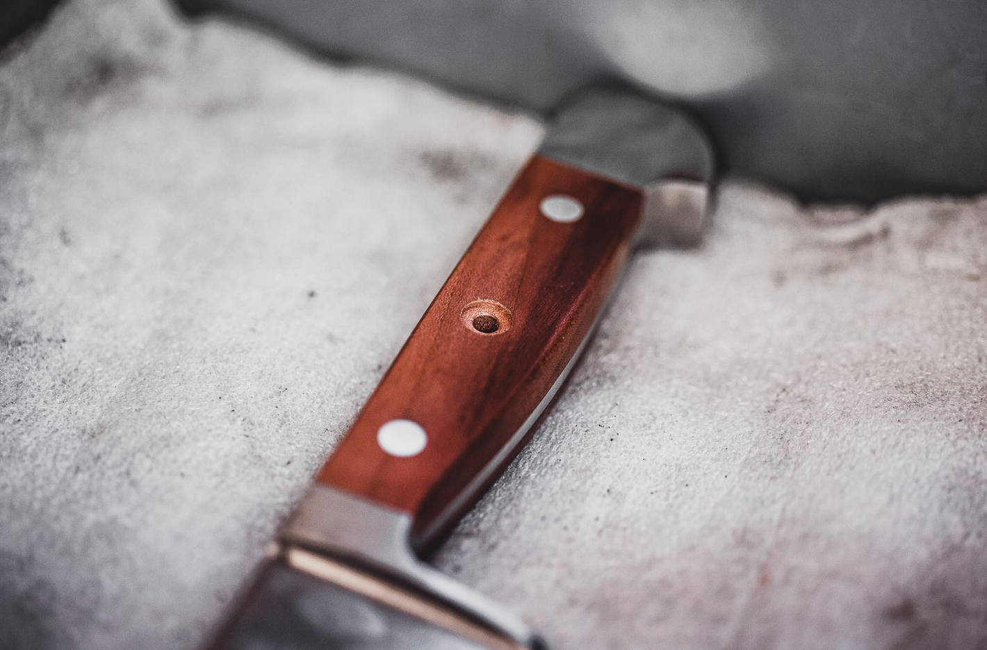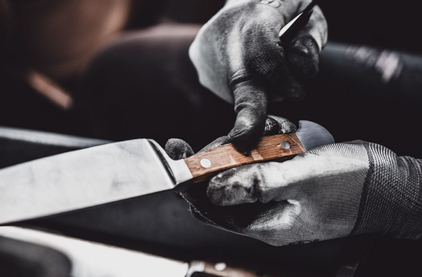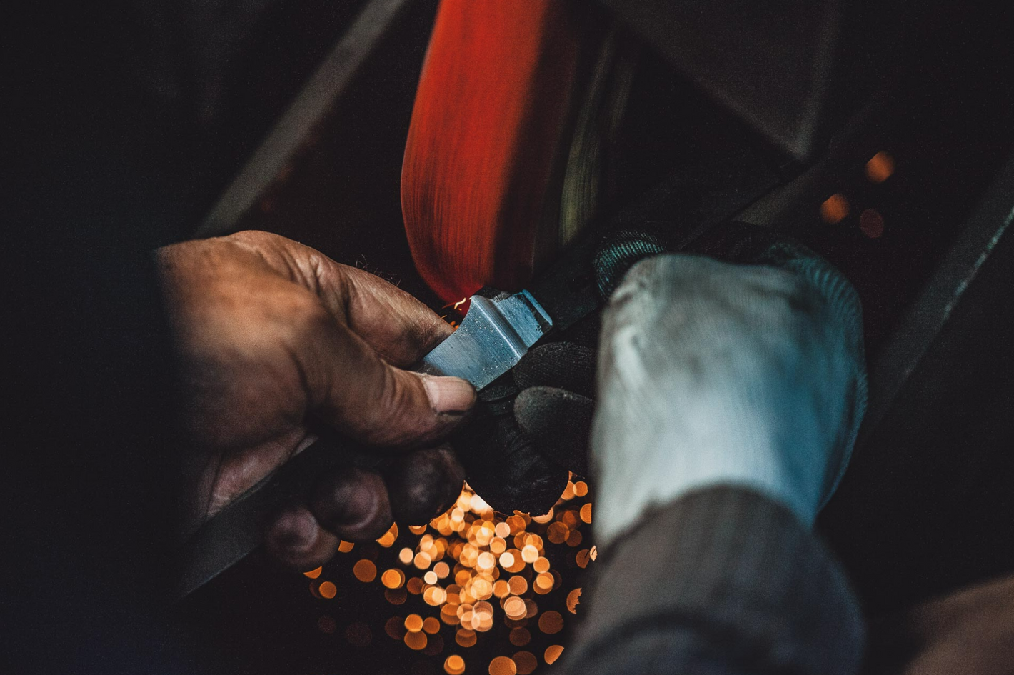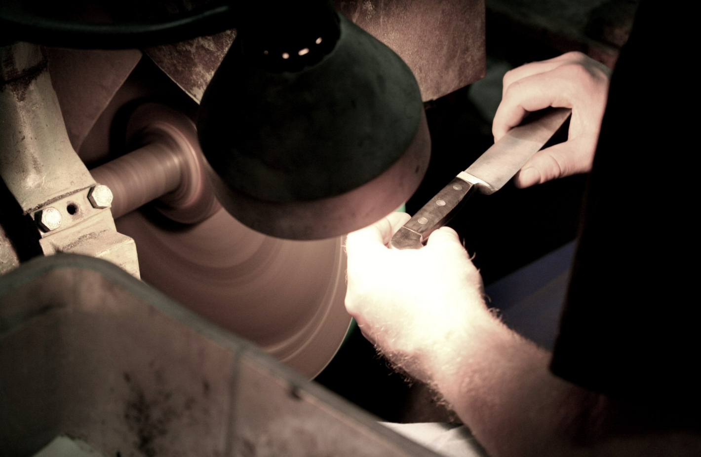 First the blade is pre-ground, then the knife back is pre-ground. This is followed by the fine grinding of the back of the knife and the sharpening of the bolster. The inside of the handle is pre-ground