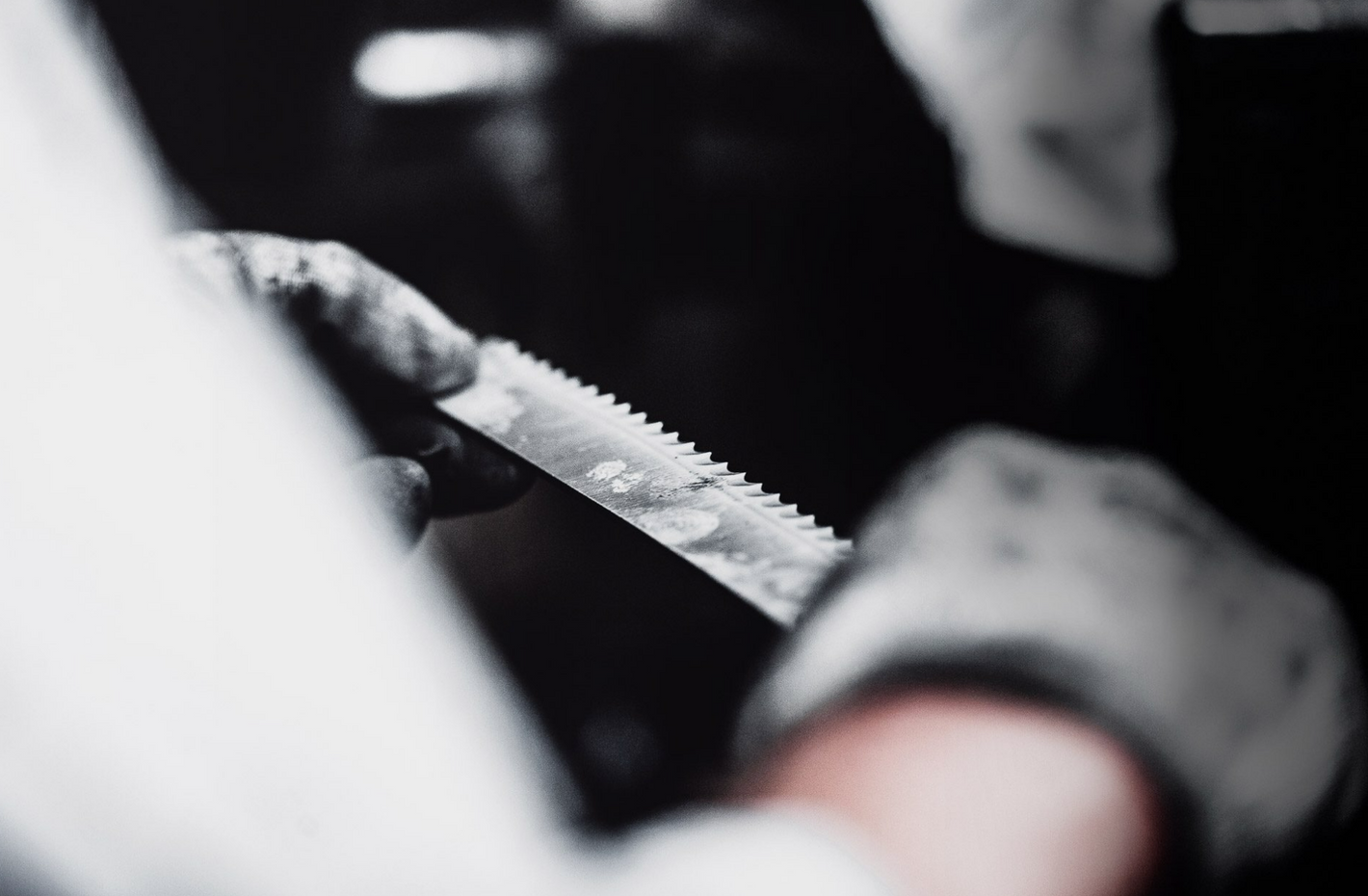 It all starts in the drop forge: slit pieces are cut from an 8 metre long bar steel (chrome, vanadium, molybdenum knife steel)