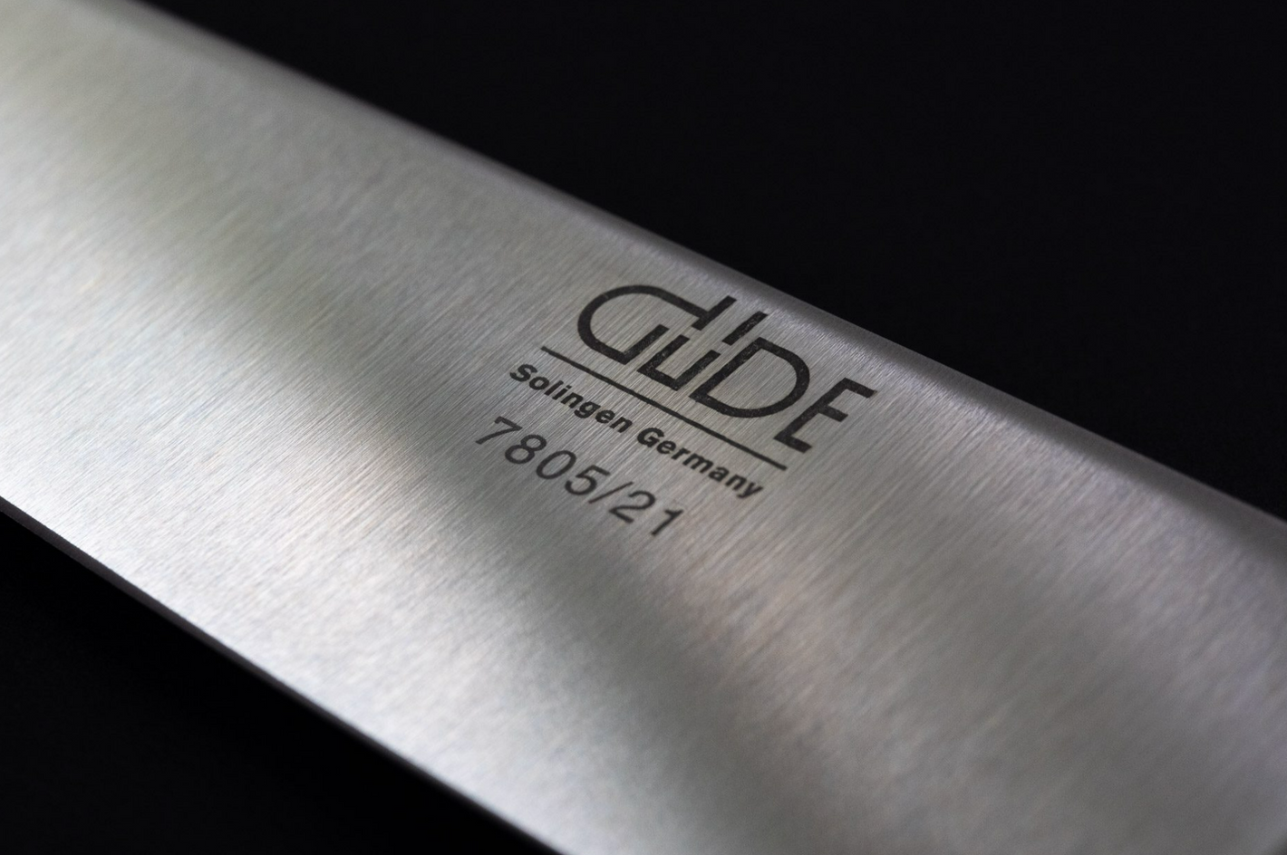 In the next step, the GÜDE logo is etched onto the blade