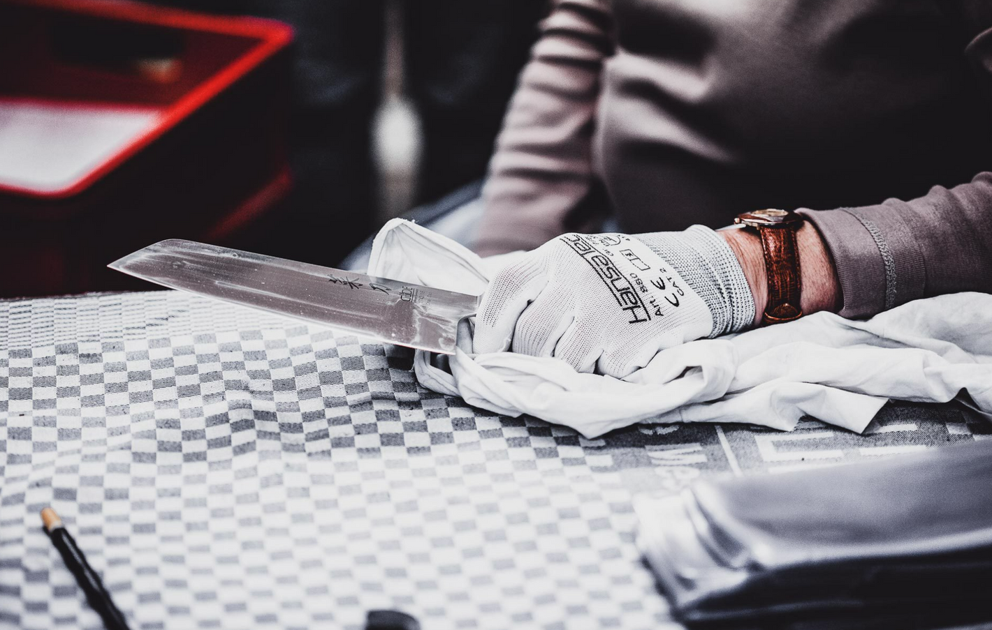 After the quality control, the knives get their protective cover