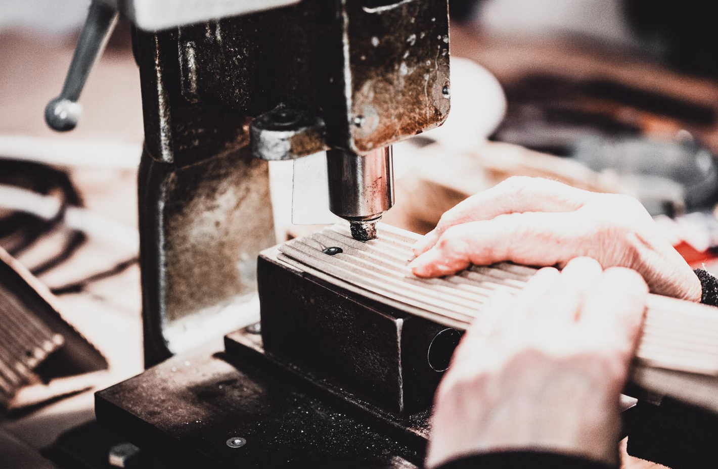 Scantlings are cut from the wood and contour milled. The scantlings are now adapted to the knife handle. Then the holes for the rivets are drilled