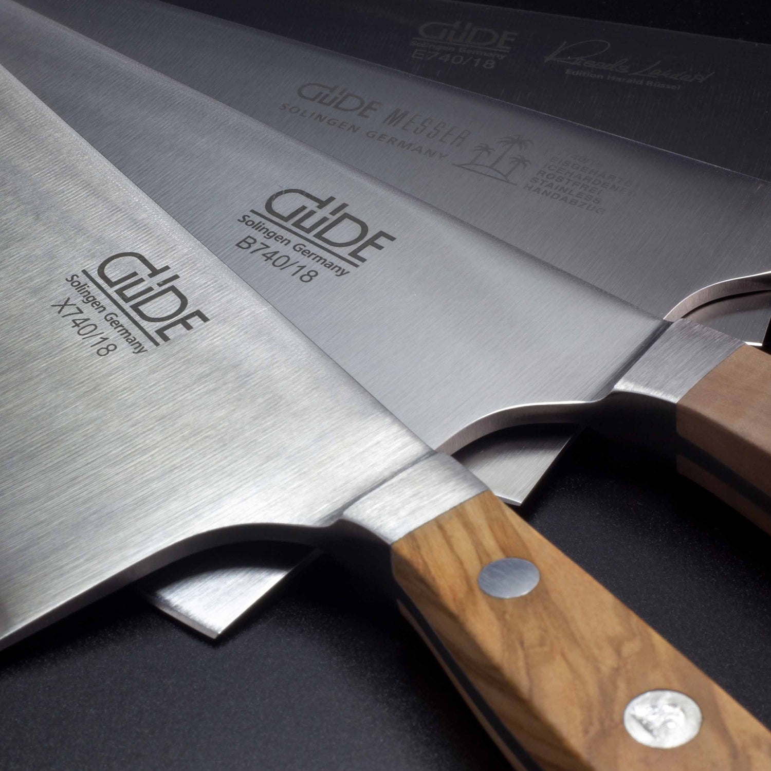 at a time when more than 9,000 - mostly small - hand workshops were producing cutlery in Solingen and establishing the worldwide reputation of Solingen knives. From the very beginning, Güde knives were drop-forged from one piece of steel, ground by hand, fitted with handles and honed by hand - so they have always been among the highest quality Solingen products.